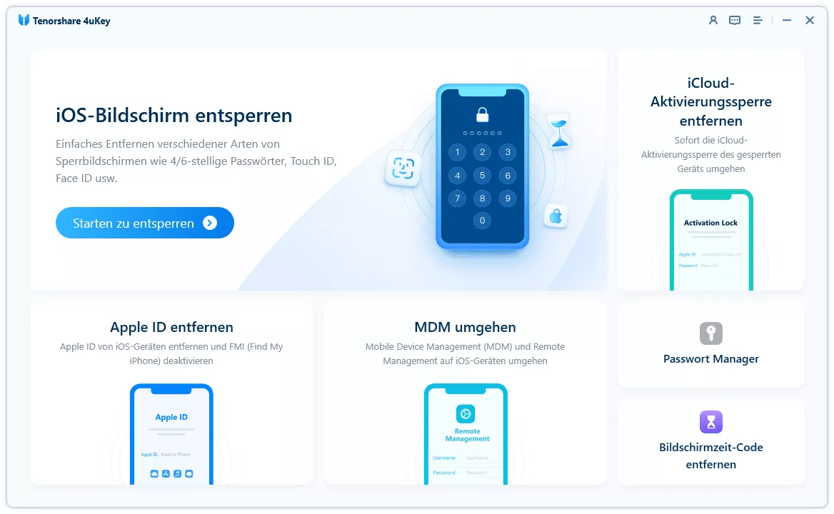 Neben den offiziellen Apple-Lösungen steht mit Tenorshare 4uKey ein spezialisiertes Tool zur Verfügung, das insbesondere dann eine sinnvolle Alternative bietet, wenn Sie Ihr Apple-ID-Passwort vergessen haben und keinen Zugriff mehr auf Ihre E-Mail-Adresse oder Telefonnummer besitzen. Auch beim Entfernen oder Wechseln der Apple-ID kann es hilfreich sein.